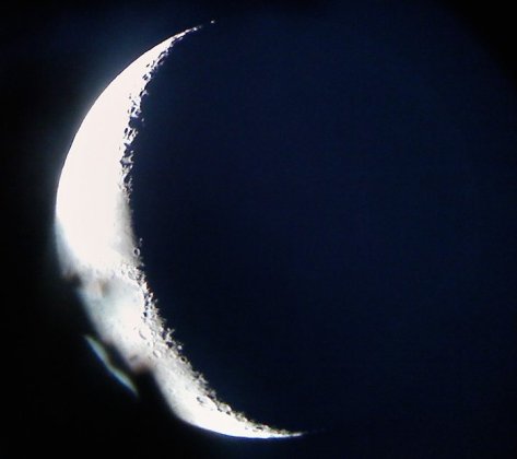 Thursday, 21 July 2011 by Carol Cizauskas Telescoped New moon seen through a telescope set up on a bank of the Truckee River, Reno, Nevada - Saturday, 11 September 2010 New moon, good planting About ready to jump out Alive in the center Share this: Click to share on Facebook (Opens in new window) Facebook Click to share on X (Opens in new window) X Click to email a link to a friend (Opens in new window) Email Like Loading... Related